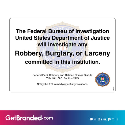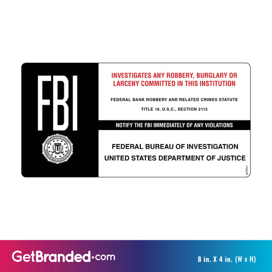 FBI Robbery Warning Decal