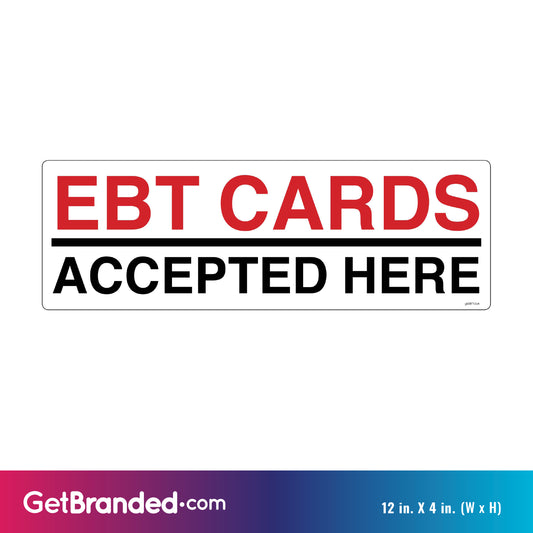 These decals are made from our exclusive high-quality, textured vinyl called SharkSkin®, which is durable, easy to clean, and UV protected for use indoor and outdoor use. In addition to the EBT / SNAP decals in inventory, GetBranded designs custom decals to meet the needs of businesses and individuals. Use our Quote Request form to request information about a custom decal design.