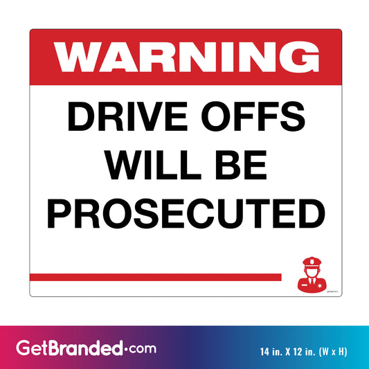 Drive Offs Will Be Prosecuted Warning Decal