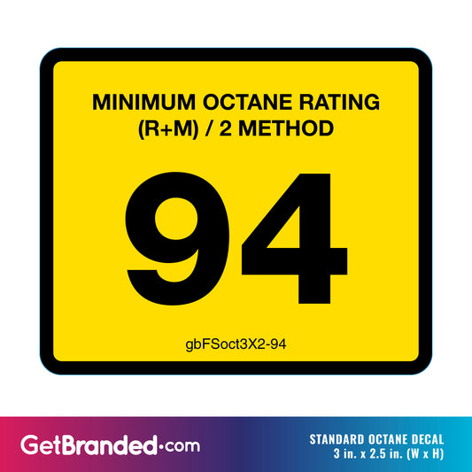 - Octane rating decals for 87, 89, 91, and 93 octane.