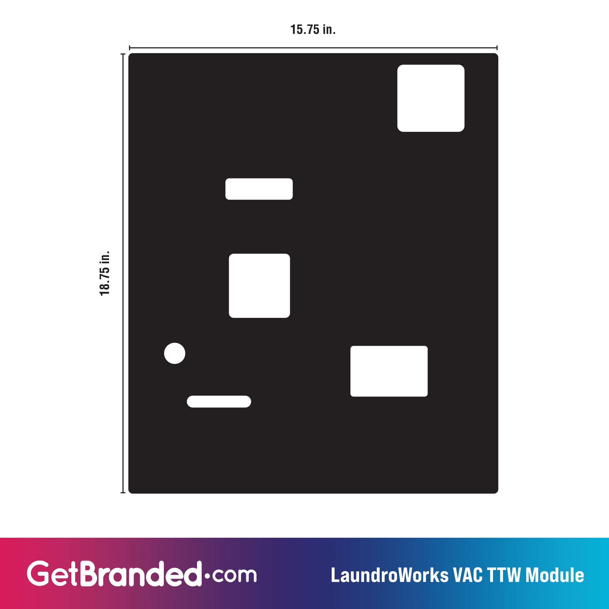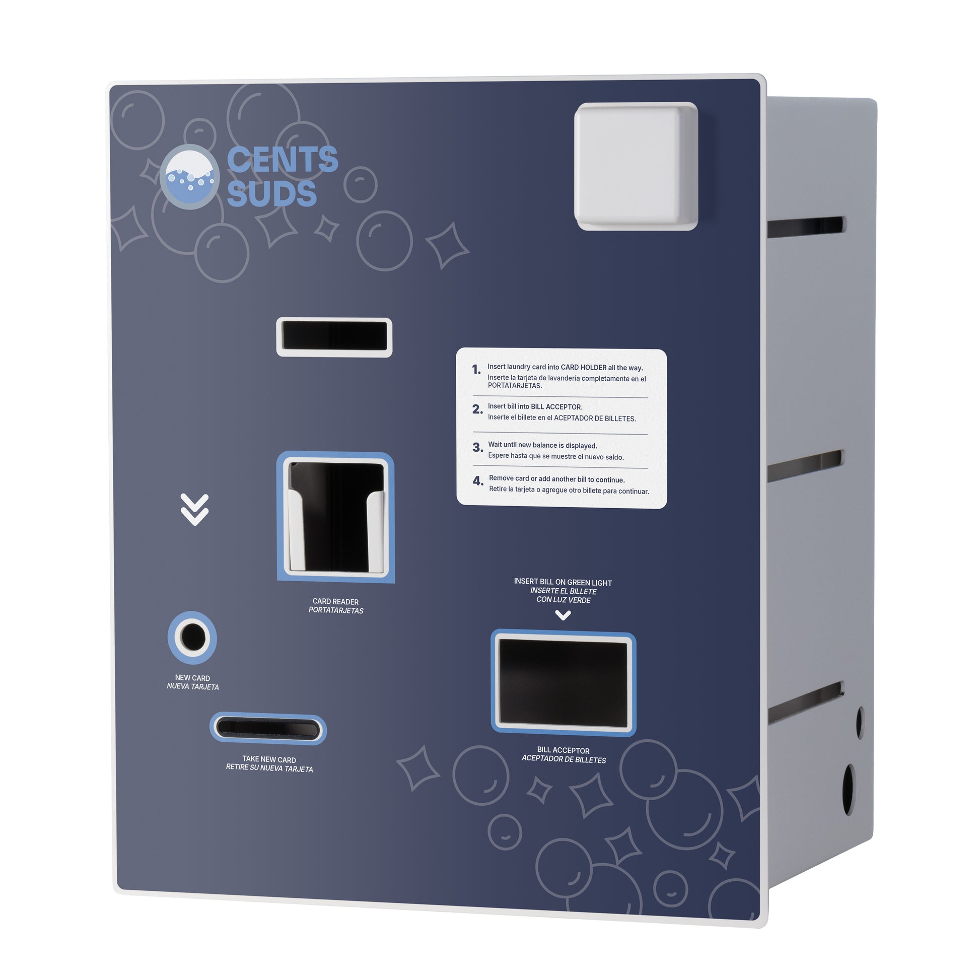 Enhance your laundromat's checkout and payment experience with the LaundroWorks VAC-TTW Module Wrap, designed specifically for the through-the-wall (TTW) Value Add Center module created by Cents (Cents Suds). This premium vinyl wrap transforms the exterior of your LaundroWorks TTW kiosk, giving it a polished, modern, and professional appearance-without the cost of replacing equipment.