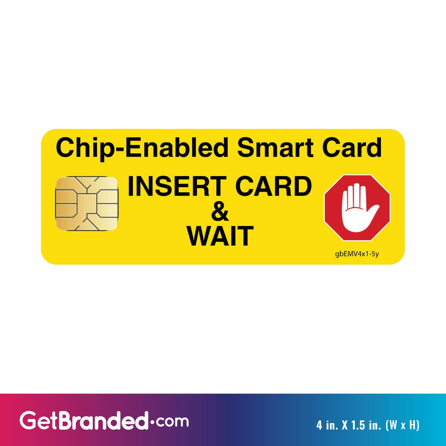 4" x 1.5" Chip Enabled Smart Card - Insert Card and Wait Decal. It is printed on durable SharkSkin® material that is scratch-resistant and long-lasting. It works great for POS machinery, ATMs, ITMs, and Kiosks.