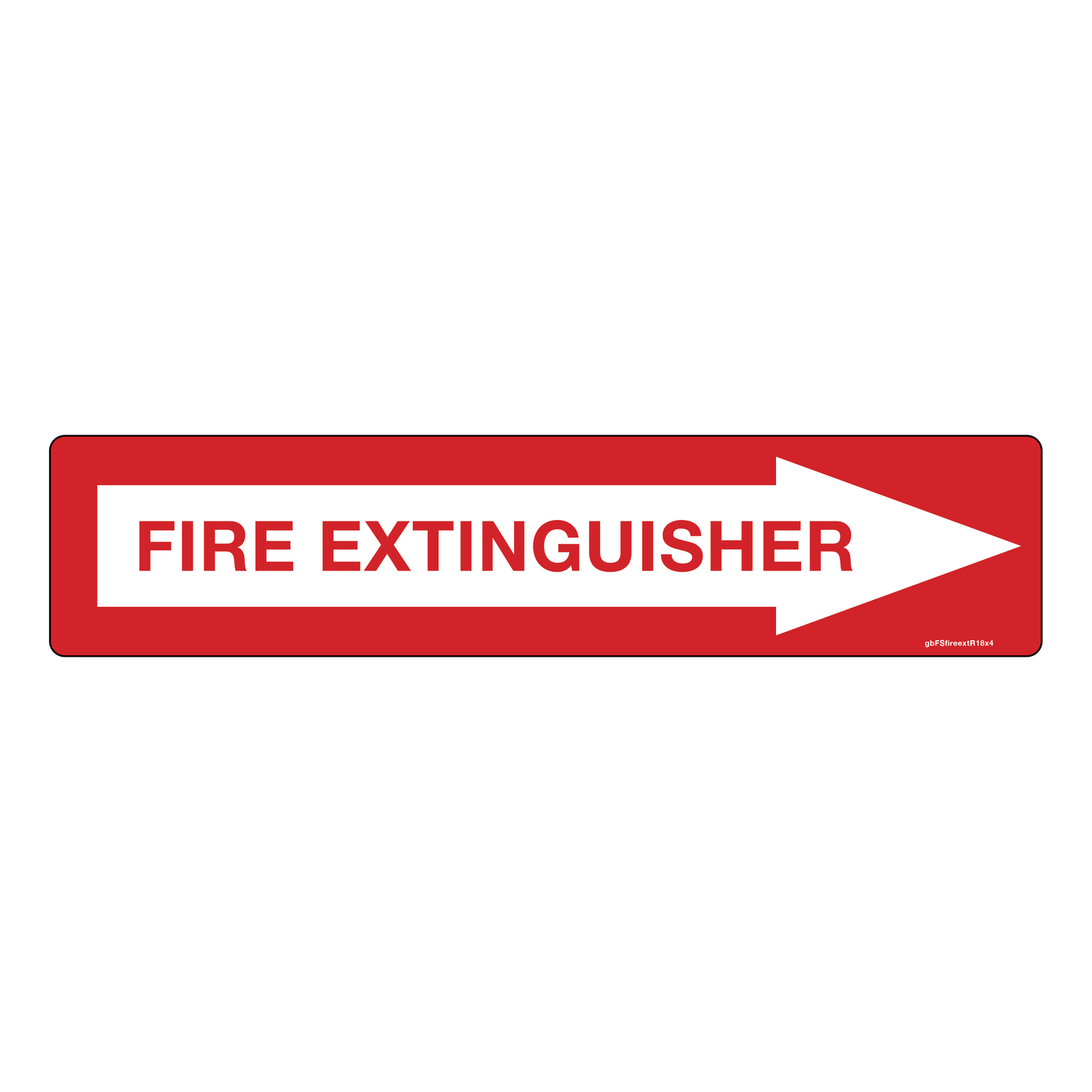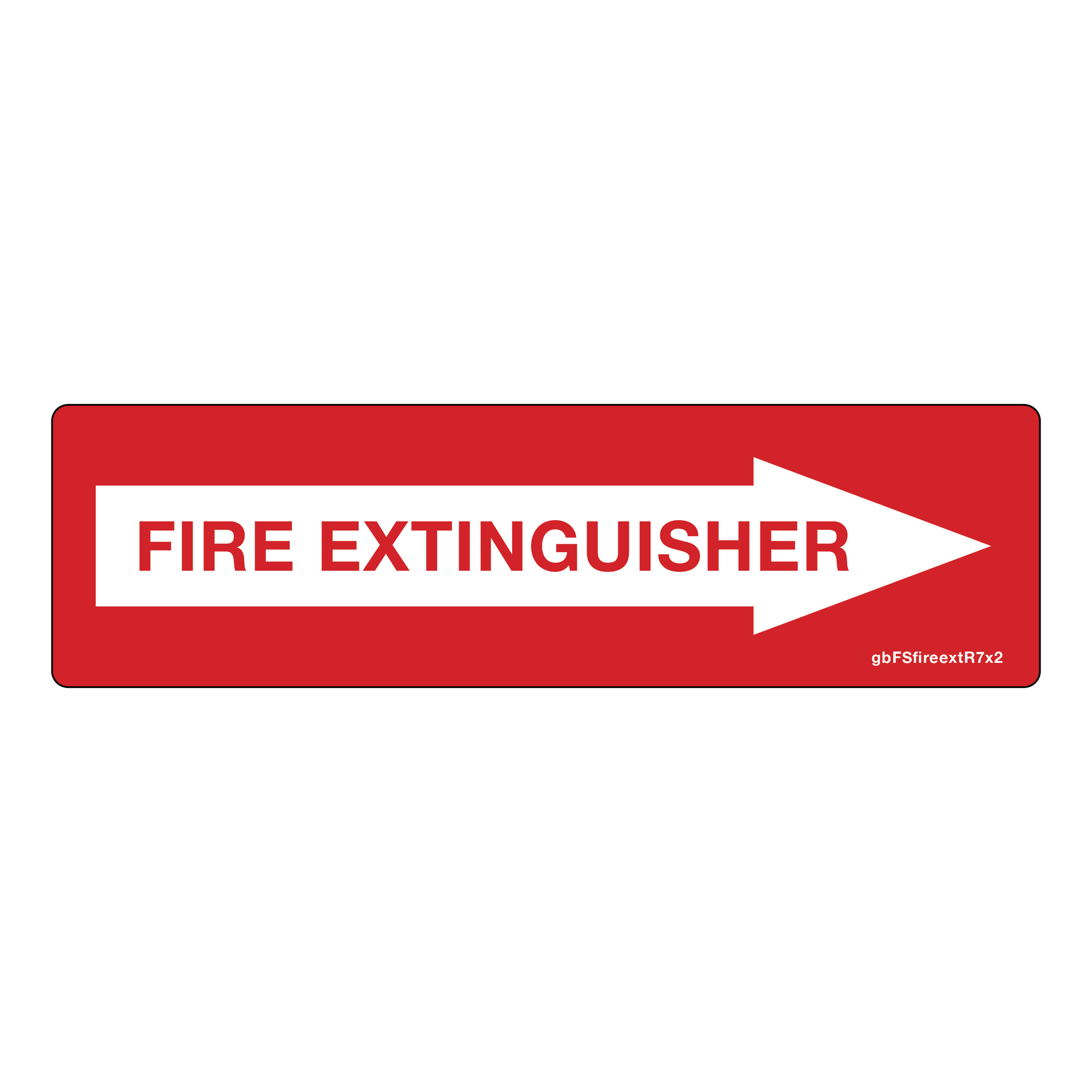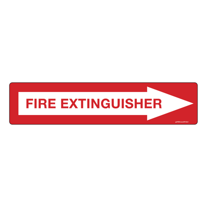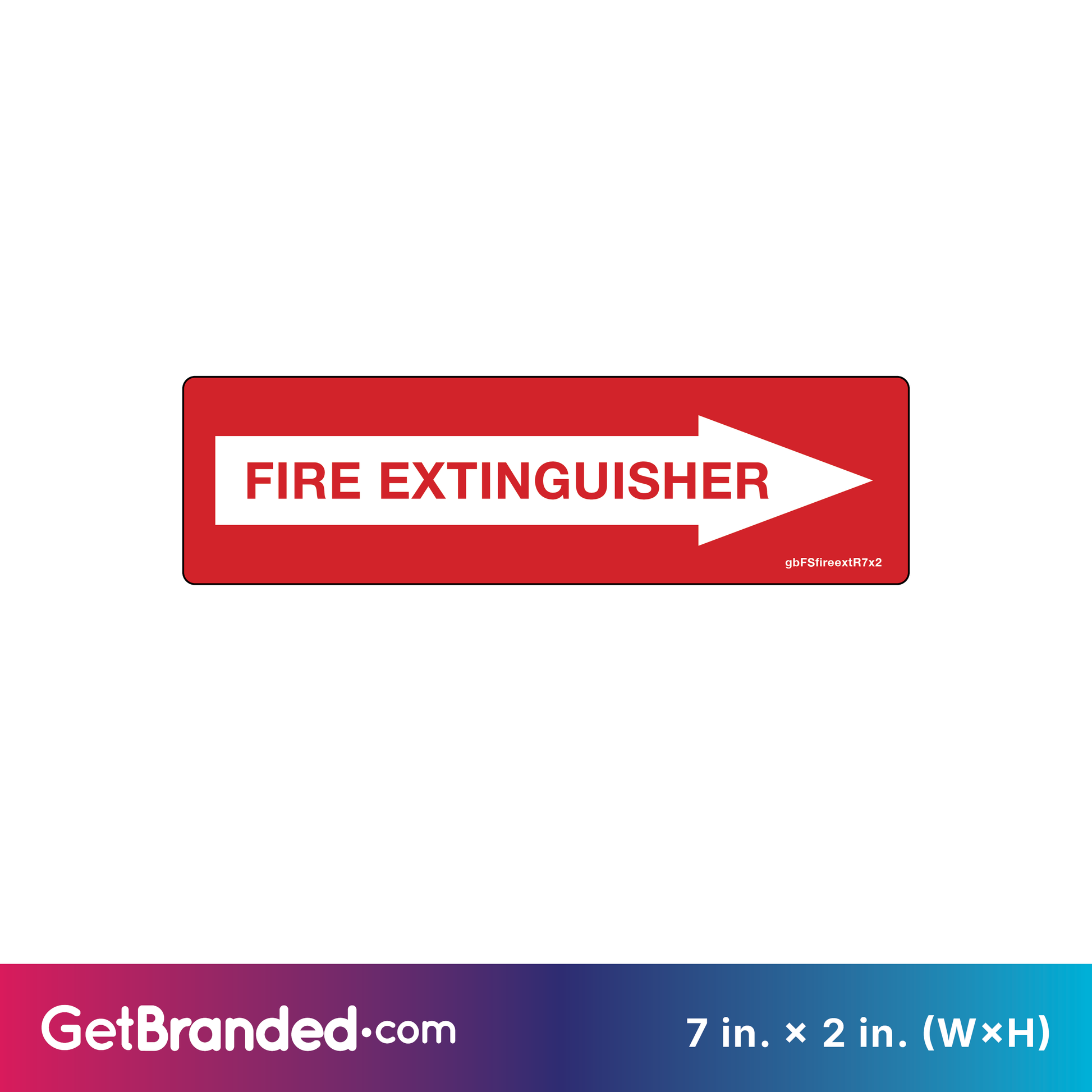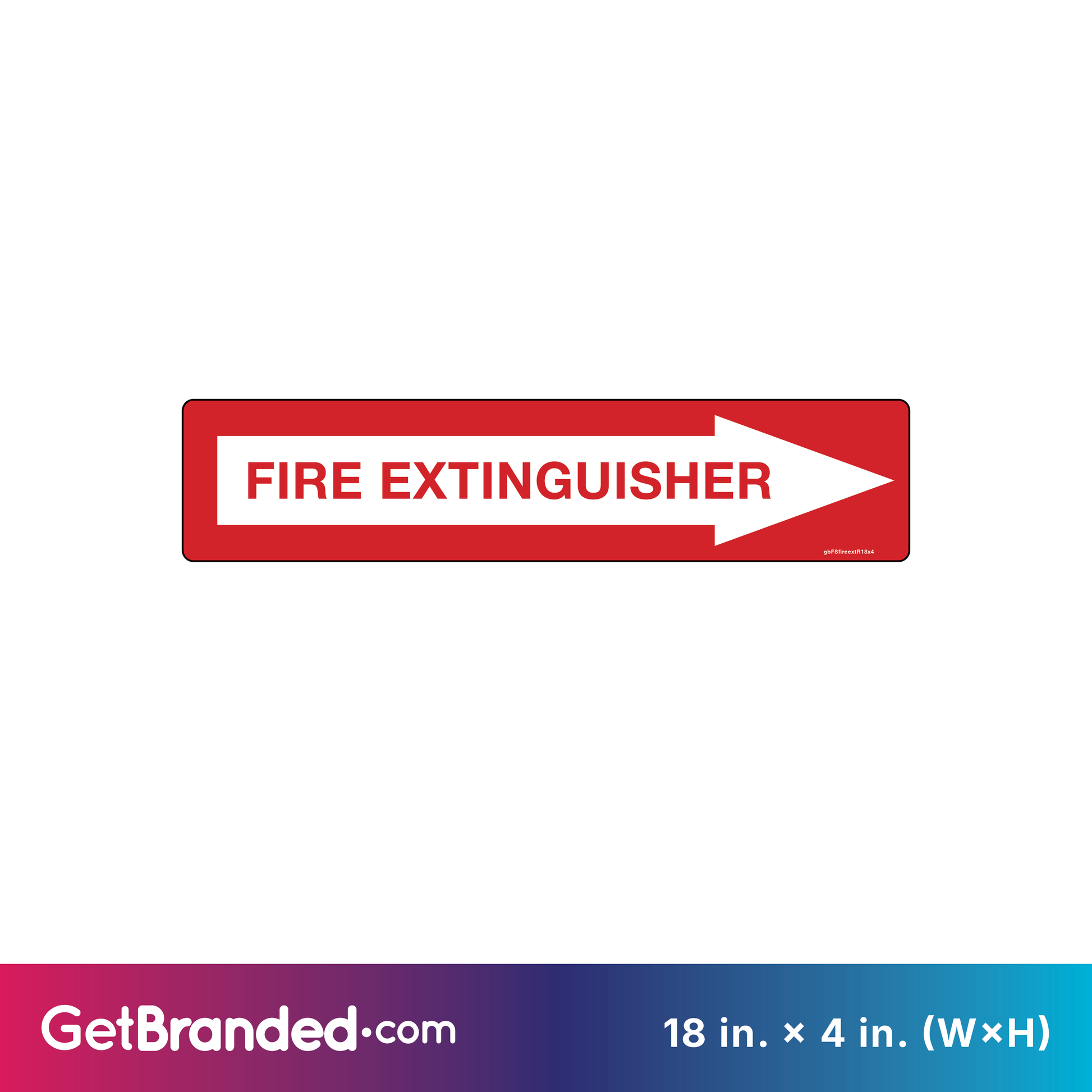 7" x 2" or 18" x 4" Fire Extinguisher Pointing Right Decal. It is printed with SharkSkin® material that is durable, fade-free, and easy to apply. This decal is great for helping work staff and other personnel where fire alarms are located in case of a fire emergency.